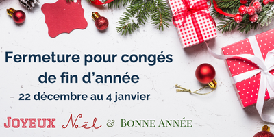 Nous vous informons de la fermeture de nos bureaux pour congés du 22 décembre 2025 au 4 janvier 2026 inclus.